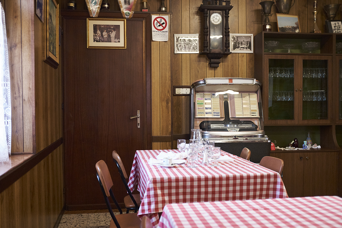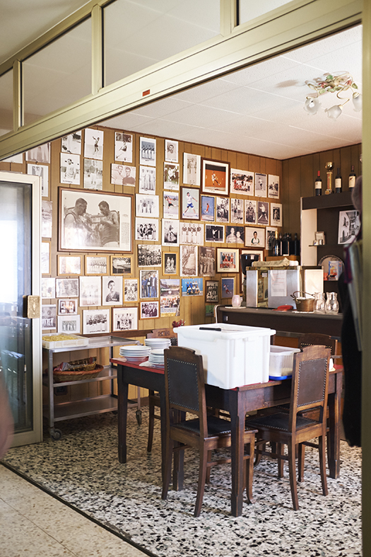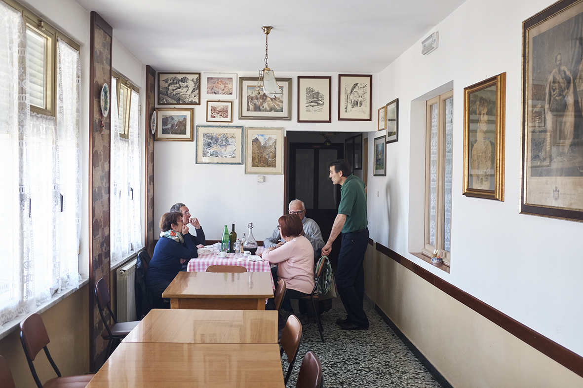 Am nächsten Tag sitzen wir quasi im Vereinslokal, auf das „wohlgewachsen” und „jung” ebensowenig zutrifft wie auch auf den Wirt und seinen Sohn. Sie waren Stars der lokalen Pallone-Szene, daran erinnern Fotos in der Gaststube und in der Küche. Die ist auch das Wohnzimmer. Und die Bar. Und das Lager für die frisch zubereiteten Nudeln.