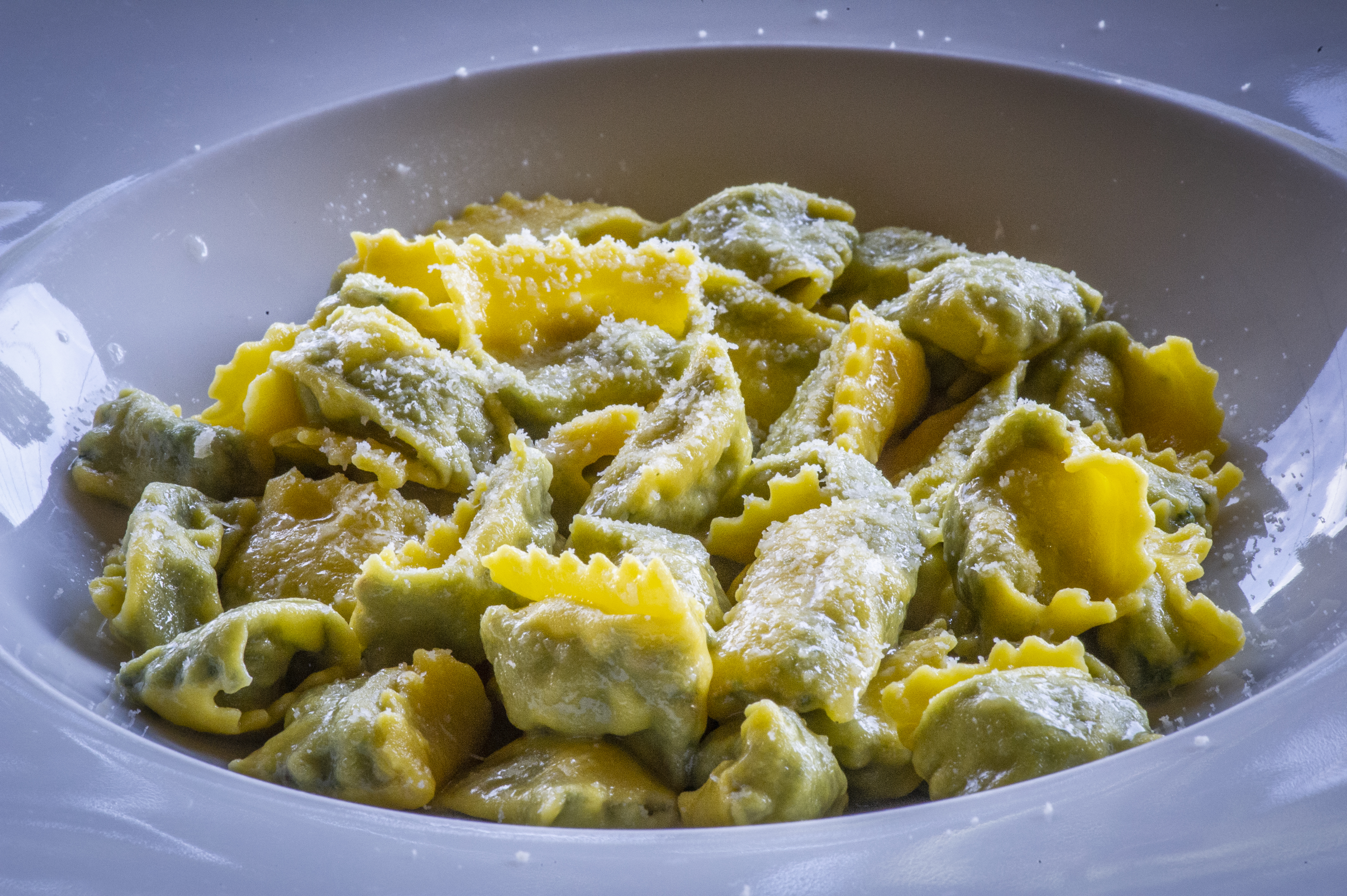 Der nächste Gang liest sich so: „Taiarin tagliati a mano al ragù di carne e funghi porcini.“ Man muss eigentlich überhaupt nicht italienisch können. Einfach nur den Satz aufsagen, zurücklehnen und sich dabei beobachten, wie der Mund wässrig wird. Letztlich sind es dünne Tagliatelle mit Schwammerlsauce. Allerdings sowas von abartig gut, dass sich das Gericht wie ein gefräßiger Krake am limbischen System festkrallt und sich dort unauslöschlich in die kulinarische Erinnerung einbrennt. Umwerfend.