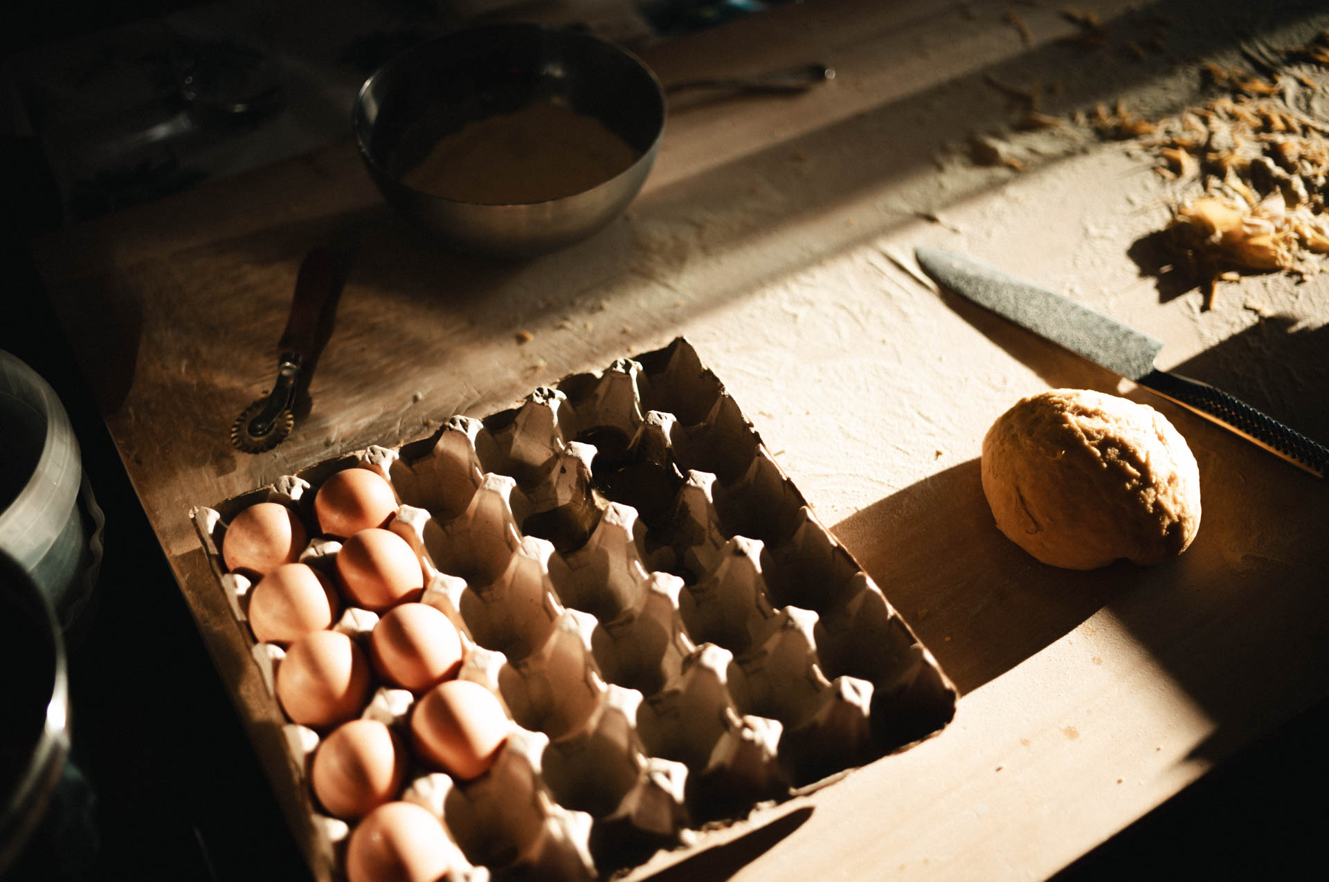 Mayonnaise became a sauce with tuna, capers, and lemon. Dough turned into handmade agnolotti. Alongside it, a simple aubergine dish. We were also introduced to classic egg pasta—step by step, with calm and dedication.