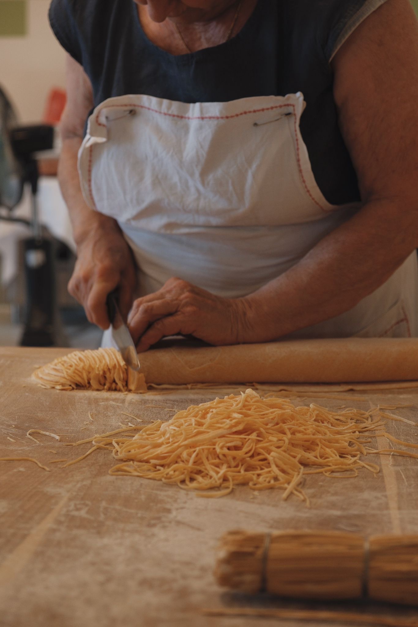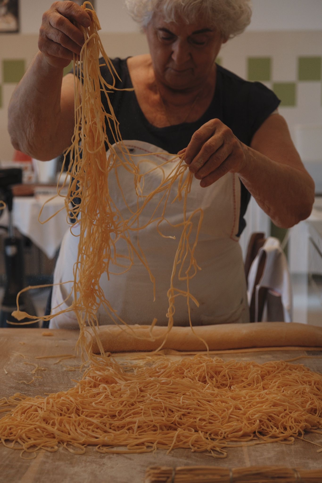 “I keep a close eye on costs, down to every detail,” Gemma says. For example the tablecloths are short, there’s only one type of drinking glass and all the plates are similar – these small choices help me keep high-quality food accessible to everyone. The menu stays the same, except for the secondi (main courses), which change with the seasons.”